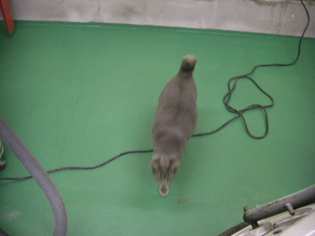 家のネコちゃんはガレージに日ごろ生活してますが、床を塗りなおしたらなんだかペットショップみたいになりました^^;