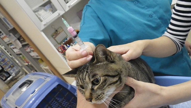 獣医さん、スタッフのオネイサン、僕でピンク色の液体をブスリとされる直前の猫さんを激写w 人間だったら、この色の注射されそうになったら必死に抵抗するのは間違いないでしょうwww