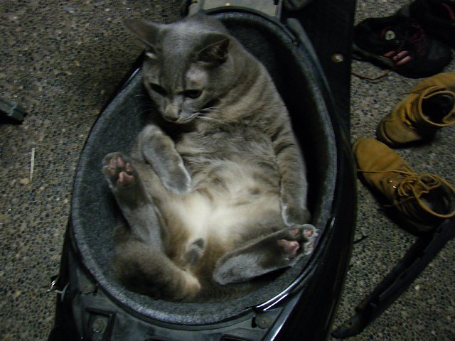 猫さんをスクーターのメットインスペースに入れた時の写真です^^